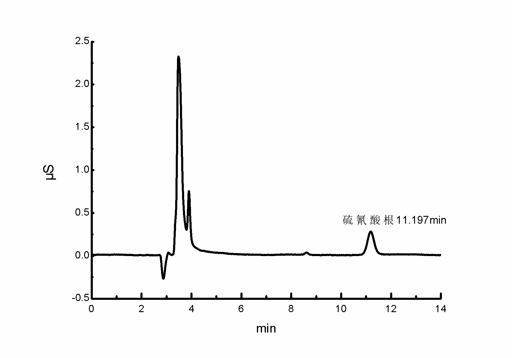 取样品处理液,仪器参考(5.2)进行测定,以保留时间定性,测量样品溶液的峰面积响应值,采用外标法定量。样品溶液中硫氰酸根的响应值应在标准线性范围内。试样待测液响应值若超出标准曲线线性范围,应稀释后进行分析。