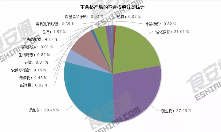 2、微生物498次,其中291次为菌落总数超标,132批次霉菌计数不符合规定,大肠菌群66次超标。