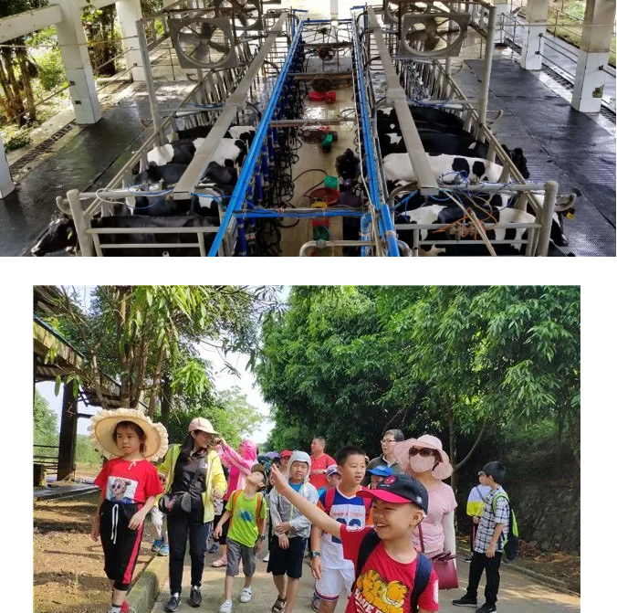 当天上午,小记者们来到皇氏集团位于南宁市江南区江西镇的根竹牧场的挤奶参观区。