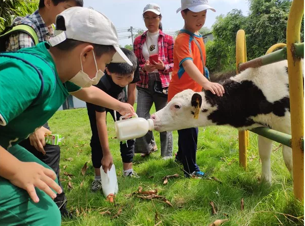 牧场之行中,让小记者们兴奋的是喂小牛。当孩子们拿起奶瓶伸向小奶牛的时候,它们发出“吧唧吧唧”的响声逗乐了参观的家长和孩子。“原来奶牛小时候也是喝奶的。”