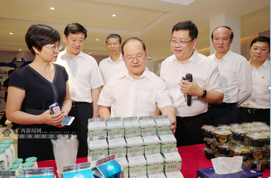 参观最后,观摩组品鉴了皇氏的爱特浓鲜水牛奶、小爱酸奶、土酸奶、裸酸奶等代表产品,对产品的质量、风味给予很高评价。“皇氏有品牌、有规模、有市场,完全可以继续做强做大”鹿书记点评道,皇氏集团华南中央工厂项目是南宁市加快新旧动能转换、推动传统产业转型升级的亮点项目。观摩组成员看得仔细、问得深入,为新项目新产业强劲的势头点赞。