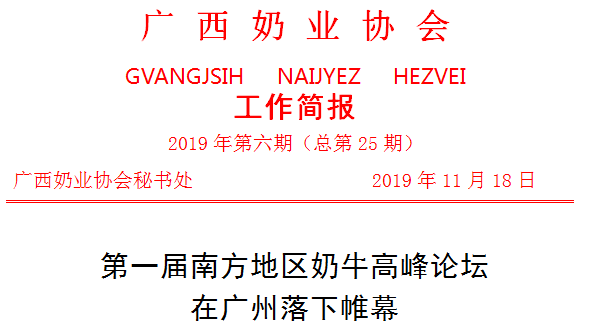 为全面贯彻习近平总书记新时代中国特色社会主义思想,落实《国务院办公厅关于推进乳业振兴保障奶品质量安全的意见》精神,全面提升科技创新能力,推动奶业技术进步,构建融合协调发展的奶业产业链,推动南方奶业迈向全面振兴。2019年11月11-13日,广东省奶业协会联合广西奶业协会、福建省奶业协会和湖南省奶业协会在广州市举办了以“加强技术创新利用,保障奶业健康发展”为主题的南方地区奶牛技术高峰论坛。来自广东、广西、湖南、福建以及附近省份的奶牛养殖、乳制品加工、科研机构、高校等行业相关管理人员和技术人员200多人参加会议。