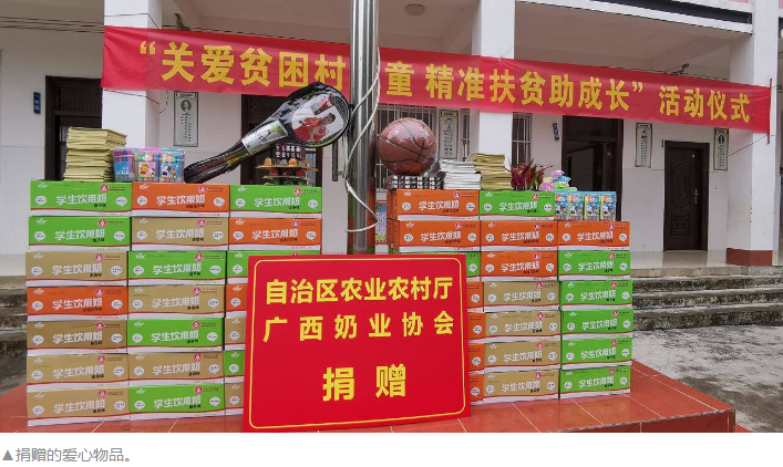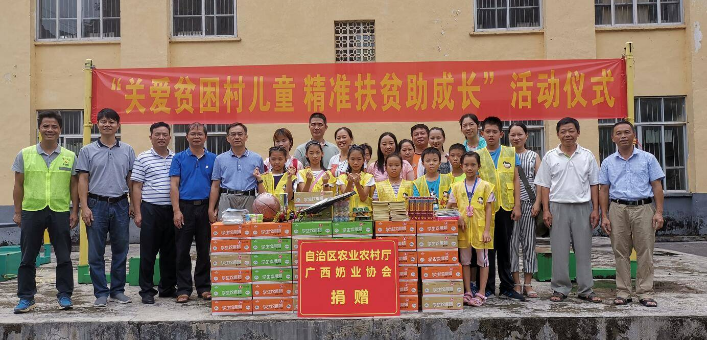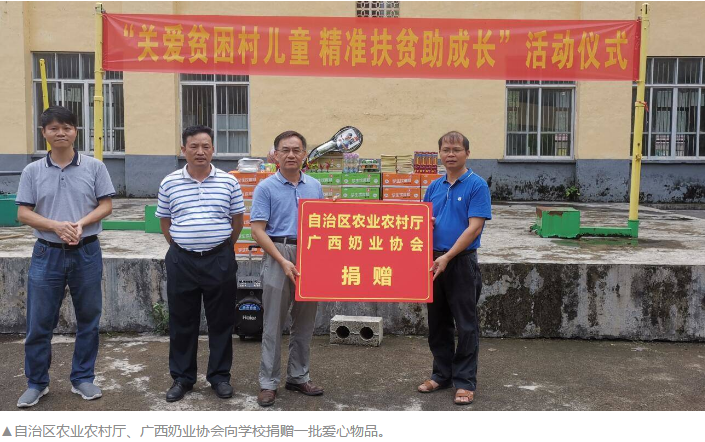 9月19日,自治区农业农村厅携手广西奶业协会、南国早报小记者俱乐部,来到崇左天等县福新镇的两所小学,举行“关爱贫困村儿童·精准扶贫助成长”活动,为那里的师生们送去皇氏学生饮用奶、石埠乳业牧场牛奶和体育、学习用品,还走访和慰问了当地一些贫困家庭。
