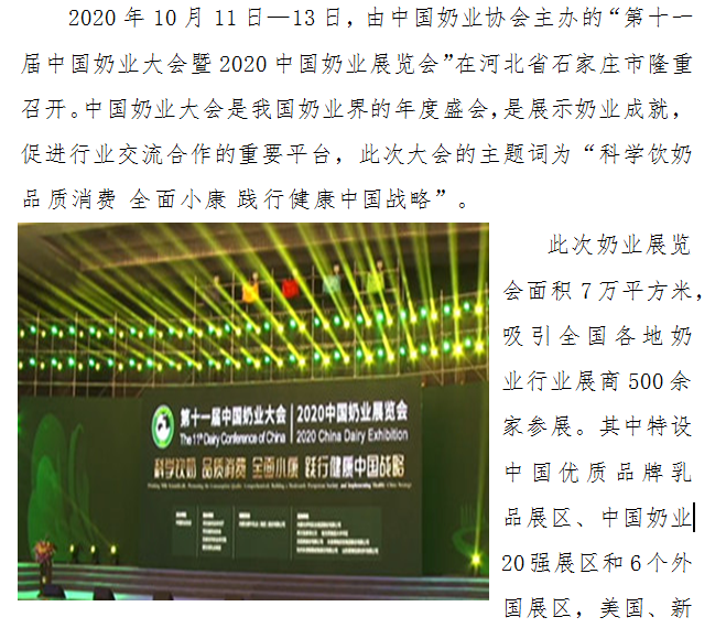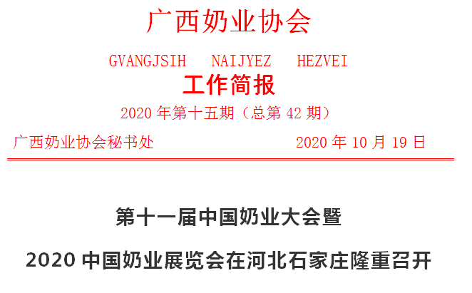此次中国奶业大会聚焦“责任”“品牌”“消费”,彰显中国奶业责任担当,展示中国奶业优质品牌,促进中国奶业品质消费,共建共享全面小康社会。期间举办的“大爱播希望 责任铸未来”大型纪录片《战“疫”中的奶业答卷中》,有广西的皇氏集团股份有限公司、广西百菲乳业股份有限公司、广西桂牛水牛乳业股份有限公司、广西石埠乳业有限责任公司、柳州三元天爱乳业有限公司、广西壮牛水牛乳业有限责任公司、广西合浦南国乳业有限公司、广西农垦西江乳业有限公司、广西巴弗罗牧业投资有限公司等企业爱心捐赠的场景;在《2020中国奶业“融智创优”品牌企业名录》中,皇氏集团股份有限公司、广西石埠乳业有限责任公司榜上有名。