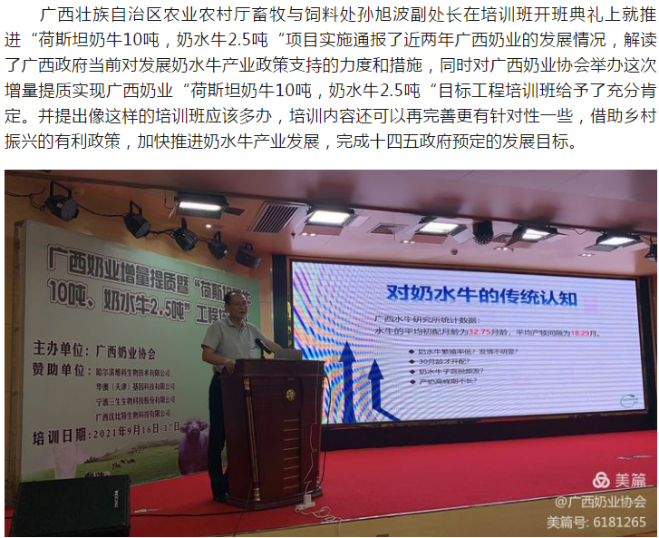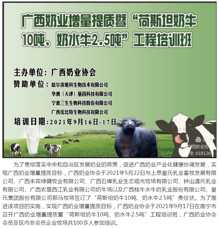 广西奶业增量提质暨“荷斯坦奶牛10吨、奶水牛2.5吨”工程培训班