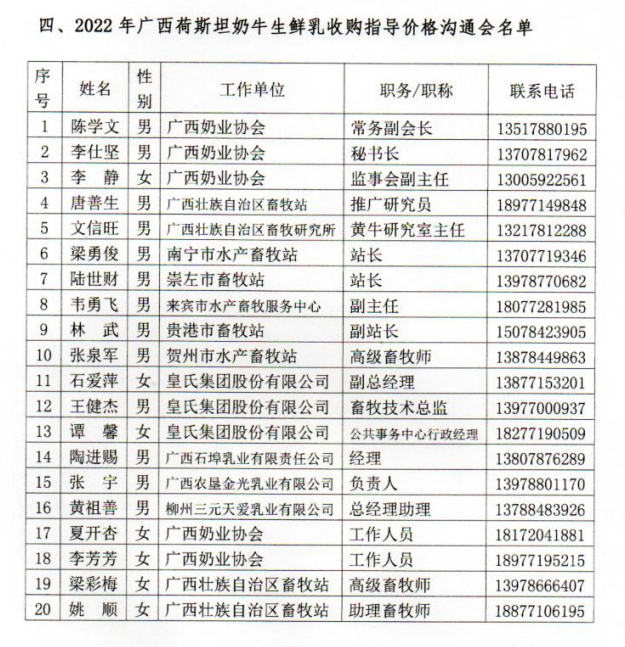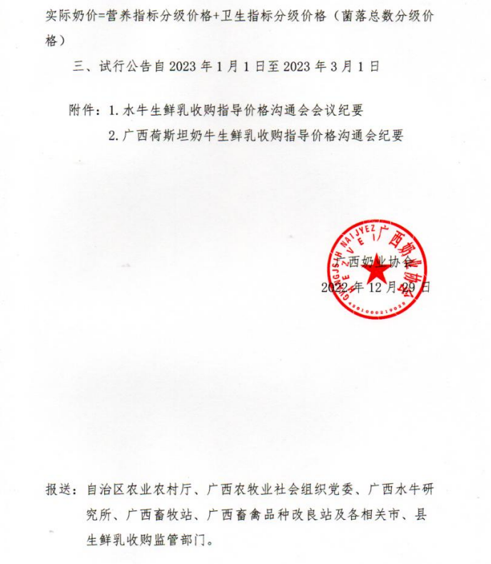 您现在的位置 : 首页 >> 行业资讯 >> 协会动态 >> 2023年广西生鲜乳收购指导价(试行)公告