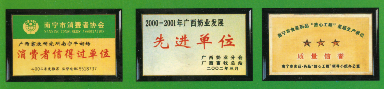 广西畜牧研究所南宁牛奶场是广西畜牧研究所的下属单位,主要是以科研为主的国有乳品厂,承担农业部、科技厅、水产畜牧兽医局等上级有关部门下达的科研项目,拥有中高级乳品研发人员35人,集科研、生产及技术推广为一体。成立于1999年,位于南宁市北郊,金桥客运站对面的区畜牧研究所大院内,占地约3500亩。拥有广西最大的优质牧草基地和娟姗奶牛群,采用国际先进全自动化的双真空挤奶系统,即时冷却,低温贮存,管道输送,全程无人手接触,避免交叉传染,确保原料乳卫生、安全。所有原料乳来自本单位娟姗奶牛场,年产量2100吨,所生产的娟姗源系列乳制品为高端品质,满足社品位人士的需求,产品畅销全区各地。产品乃至香浓醇厚、原汁原味、真材实料、营养绿色、健康安全。是广西唯一一家拥有娟姗奶牛群,自有奶源、自产自销的乳制品生产厂家,真正实现了从“草—牛—奶—销”的全程控制。