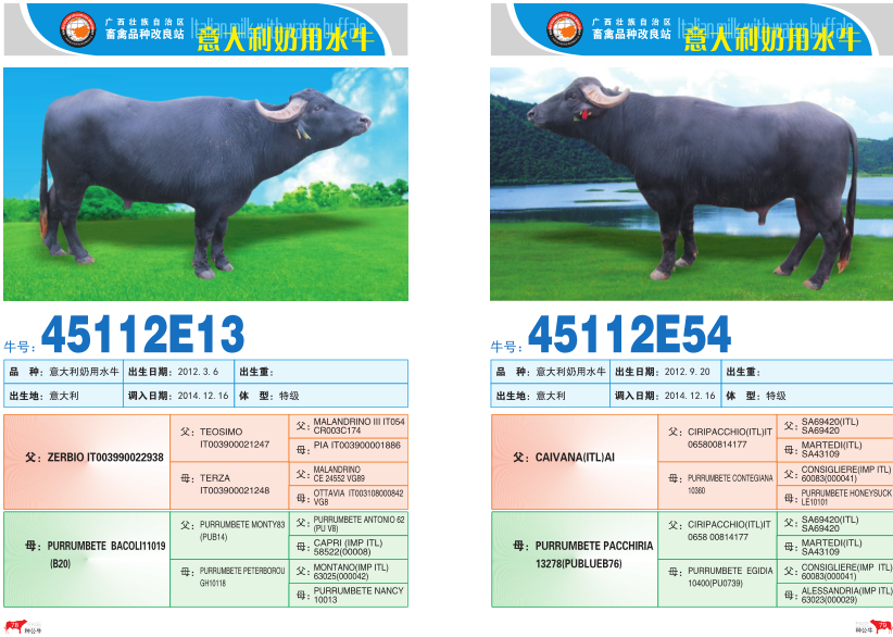 2、种奶水牛引进:2014年12月,经农业部批准及国家遗传资源专家委员会评审,公司从意大利引进59头意大利奶用水牛种牛(10头公牛,49头母牛)。